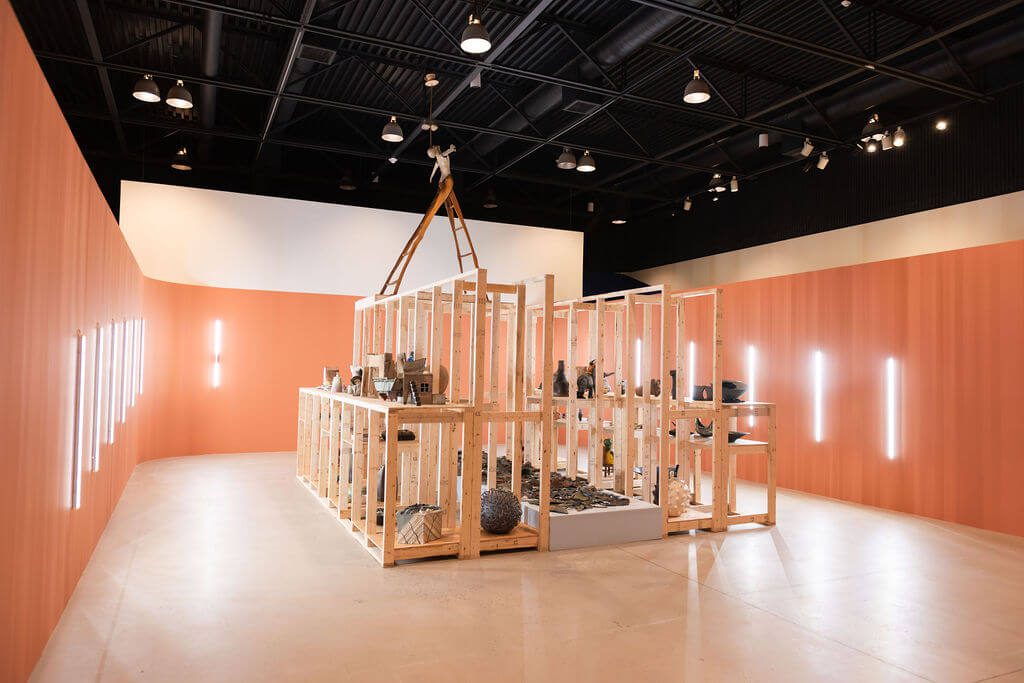 Calling upon a long history of exhibitions that recreate artists’ studios in gallery spaces, A Curve, Not A Line has a fully functioning clay studio at its heart, offering a unique, immersive experience to deepen viewers’ understanding of an artist’s creative process. It nods to the history of creation and production in our active, vibrant studios. By stepping into a working studio staged in the gallery, audiences can forge a closer connection with the act of making, seeing beyond a finished piece to the conditions under which it was made. To further animate artists’ working processes, every Sunday from 1 to 3:00 pm, artists from FUSION (The Ontario Clay and Glass Association) and the Burlington Potters’ Guild will host live demonstrations. Local clay artists will explain various methods, techniques, and technologies and, at the end of the session, will leave their raw clay creations on the “studio” shelves amongst work from AGB’s permanent collection. Transforming passive viewing into active audience engagement, and blurring the line between artwork and environment, this curatorial approach enriches historical and cultural appreciation through an intimate view of the artist’s working world, seeking to make art more accessible and approachable.