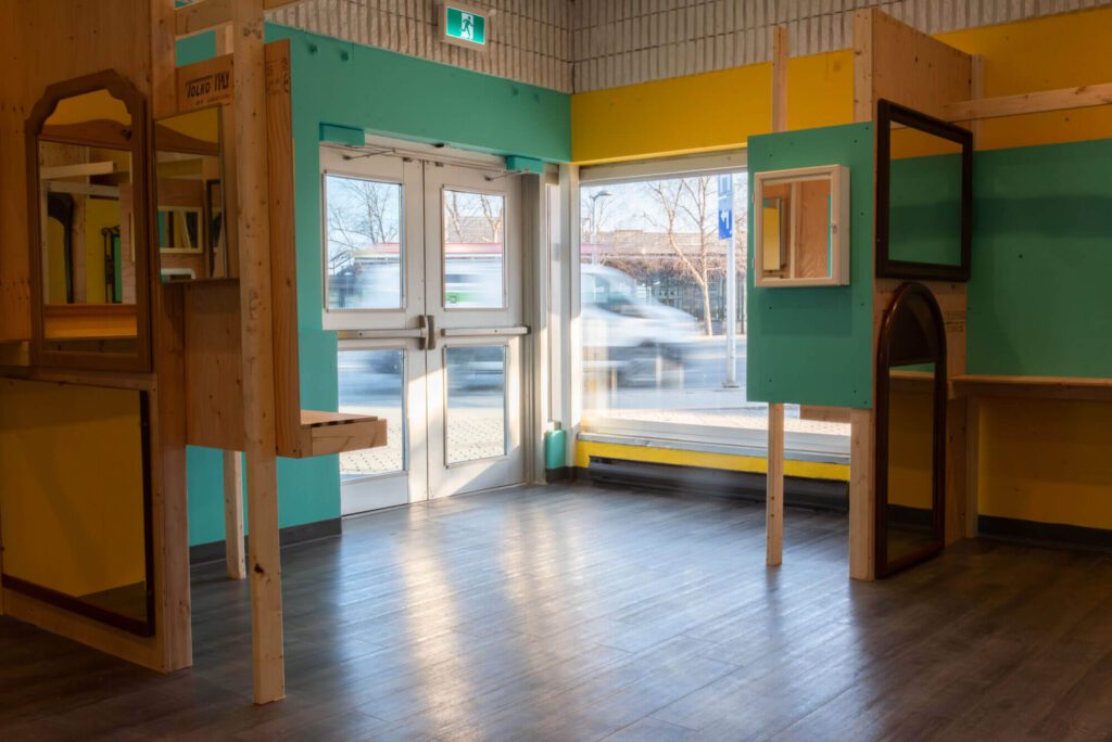 Nous nous inspirons de ce que nous avons appris en 2023 de l’espace de programmation collaboratif la Bibliothèque vivante pour expérimenter durant un an avec un deuxième laboratoire d’action communautaire. Le projet Le lieu en tant qu’objet et l’objet en tant que lieu de l’artiste José Luis Torres investit le Laboratoire vivant avec une plateforme architecturale construite pour l’exploration, la création et l’exposition spontanées.