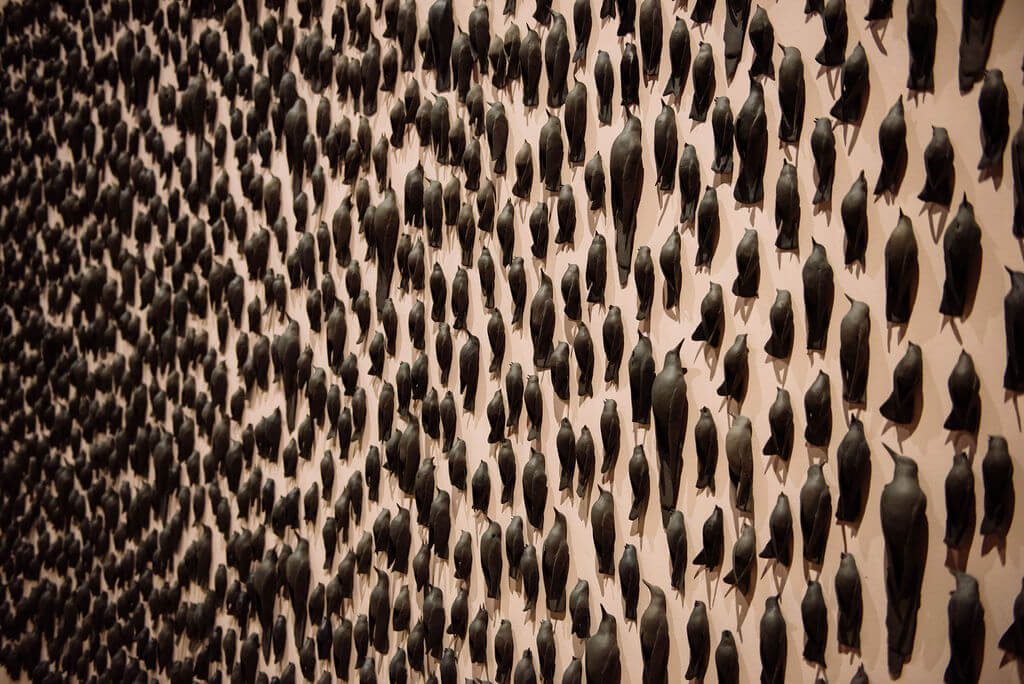 David R. Harper’s exhibition MIDNIGHT is a profound exploration of stillness rendered in material form, including glasswork, weaving, embroidery, and a monumental installation of more than 10,000 ceramic birds.